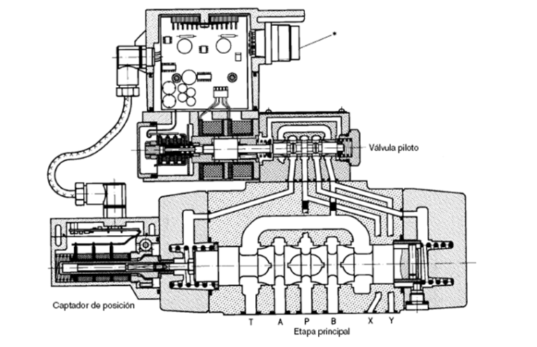 Las válvulas proporcionales son válvulas de infinitas posiciones, en las que la magnitud (presión, caudal, etc.) es proporcional a la señal de entrada.